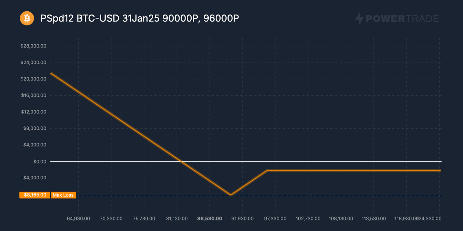 A modest decline (e.g., $92,000-93,000) could result in a partial loss as the loss on the at-the-money put sold exceeds the gain on the out-of-the-money put bought.