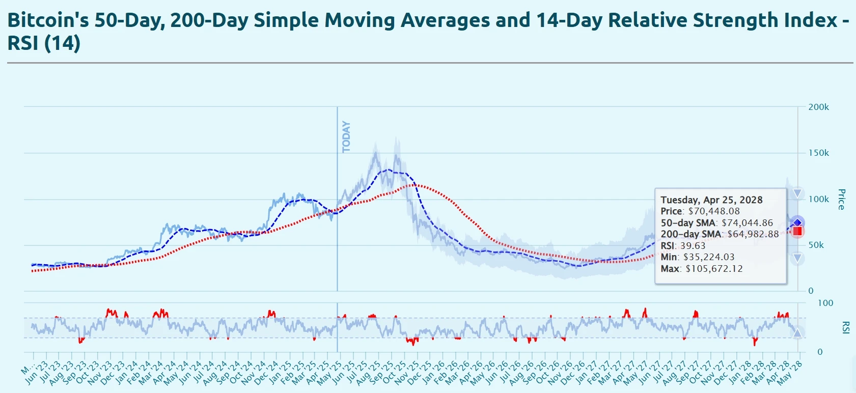 As of April 25, Bitcoin’s key moving averages are as follows: