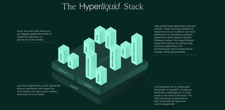 HyperEVM integrates the general EVM network into the Hyperliquid blockchain state, forming a dual VM architecture: