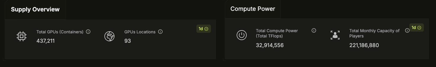 Meanwhile, according to Aethir's GPU Dashboard , Aethir's distributed GPU cloud computing power has reached 32,914,556 TFlops, equivalent to over 490,000 NVIDIA H100s, valued at over tens of billions of dollars. In terms of available GPU scale alone, Aethir rivals a handful of global giants capable of large-scale LLM training and highly concurrent inference, placing it among the world's top enterprise-class computing power providers.