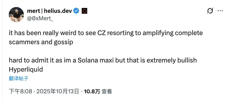 The debate quickly sparked a debate. DeFi veteran Andre Cronje supported Binance, while core Solana community member and Helius Labs CEO Mert backed Hyperliquid. The industry was thus divided into two camps.
