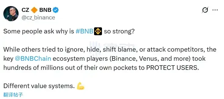 This statement undoubtedly slapped CZ in the face, and he quickly responded to Jeff: "While others tried to ignore, hide, shirk responsibility, or attack competitors, key players in the BSC ecosystem - Binance, Venus, etc. - spent hundreds of millions of dollars out of their own pockets to protect users. Different value system."