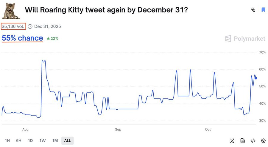 But then the trading volume increased by only $500, but it significantly affected the price, pushing the probability up to 55%.