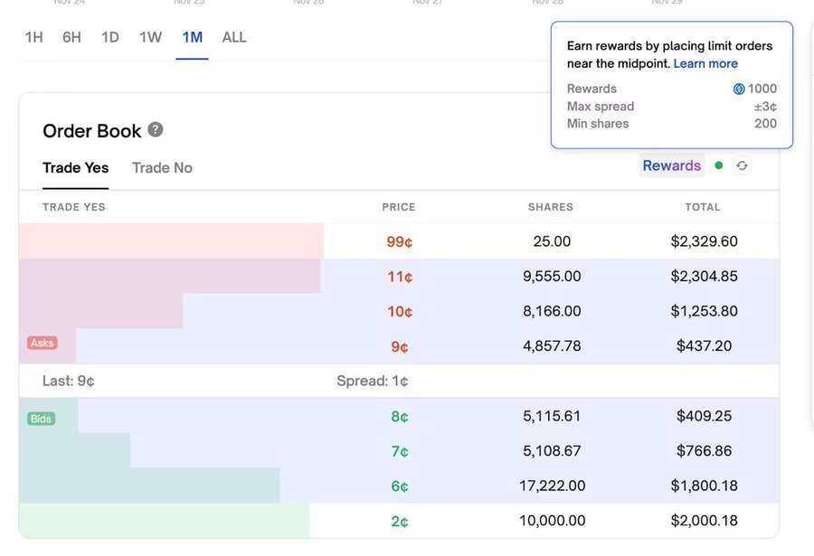 Polymarket also encourages users to provide liquidity through a reward mechanism.