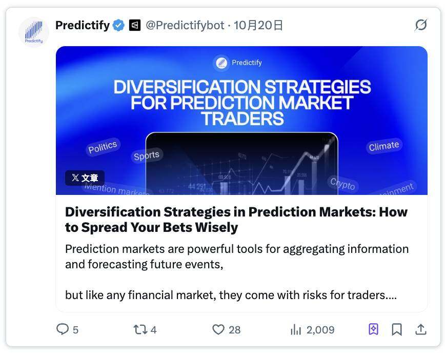 Here is @Predictifybot Here’s an excellent article on how to diversify your prediction market portfolio: