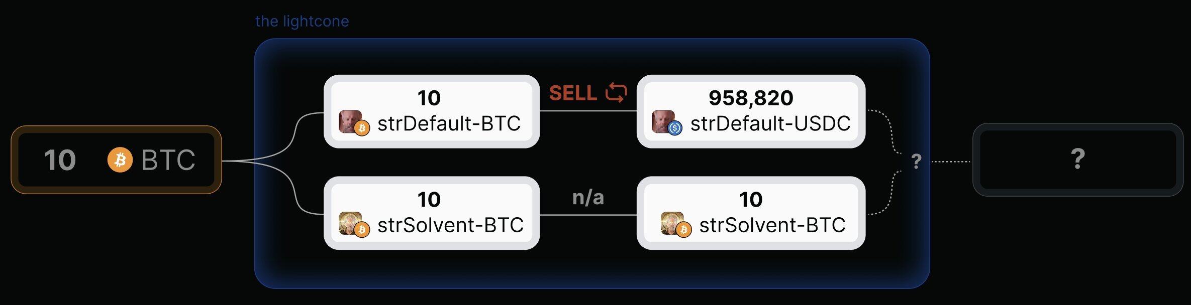 - Event-based hedging: Traders can hedge specific risks without paying a premium unless the risk occurs. For example, a trader concerned about a specific credit event (such as a Saylor default) could hold strSolvent-BTC while selling their strDefault-BTC in exchange for strDefault-USDC.