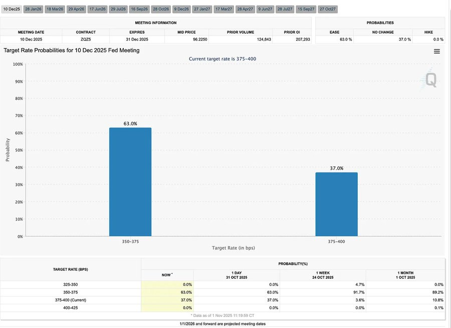 Due to the data gap caused by the government shutdown, the Federal Reserve was essentially operating "blindly." Powell's hint to traders was very clear: whether interest rates would be announced in December was still uncertain. Expectations of a rate cut quickly subsided, the short-term yield curve flattened, and the market was digesting the shift from "data-driven" to "data-deficient" caution.