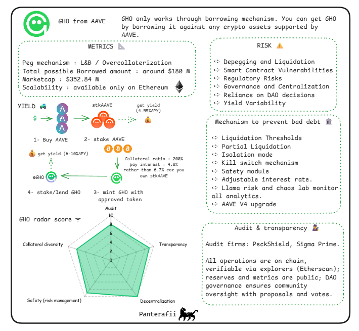 GHO operates solely through a lending mechanism; you can borrow GHO by pledging any crypto asset backed by Aave.
