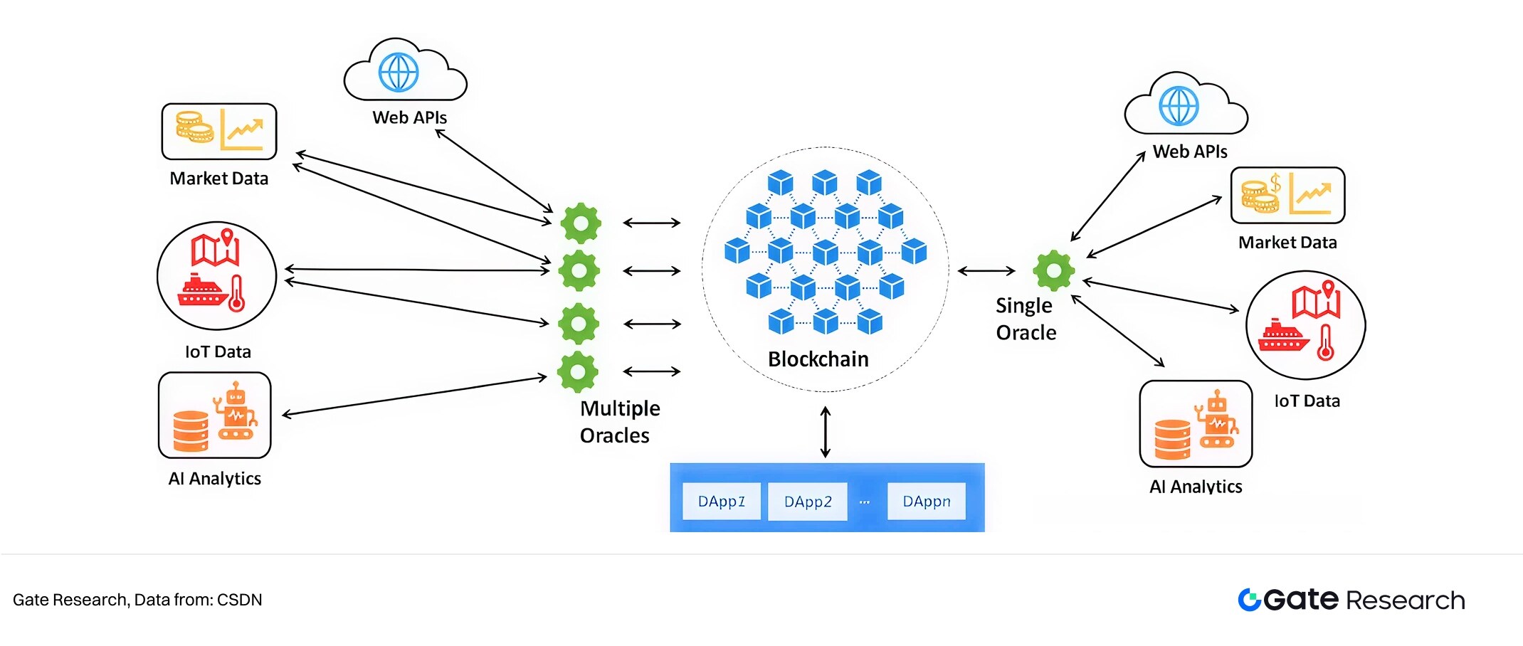 ● Oracles are a key infrastructure connecting the blockchain with the real world: they can securely and transparently bring off-chain data (such as prices, events, asset states, etc.) onto the chain, enabling smart contracts to perceive and interact with the real world, and becoming the "trust engine" and "data settlement layer" of the Web3 ecosystem.