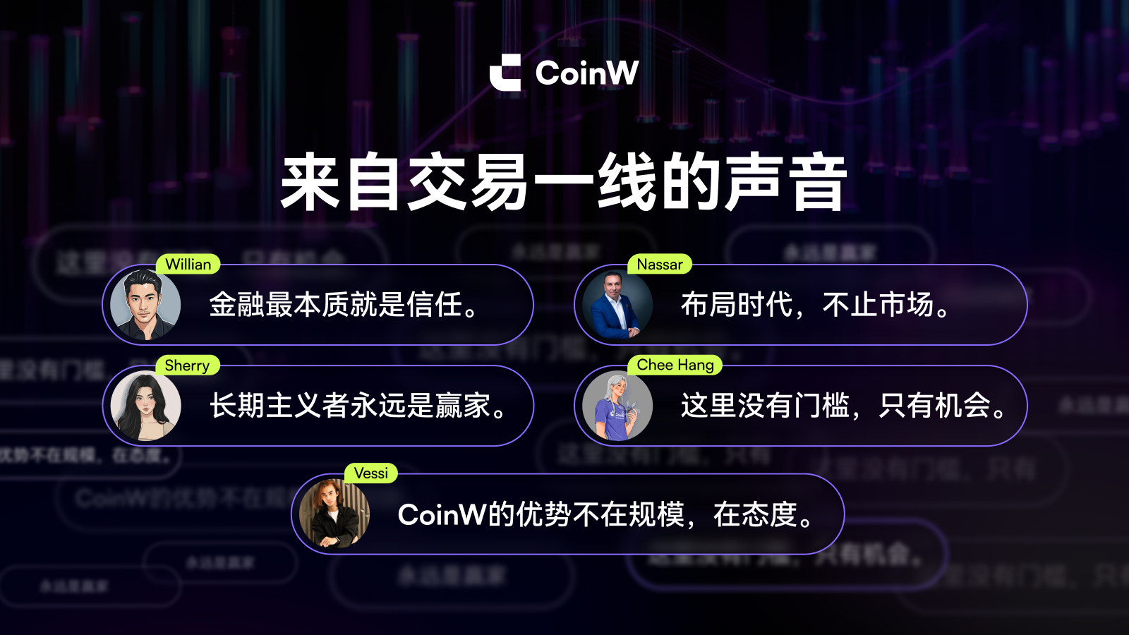 To celebrate its eighth anniversary, CoinW launched a global UGC (User-Generated Content) campaign, inviting users to share their stories and insights about the platform. Following this, the team conducted in-depth interviews with over 30 users, partners, and employees worldwide, extracting market trends and user needs from real-world examples.