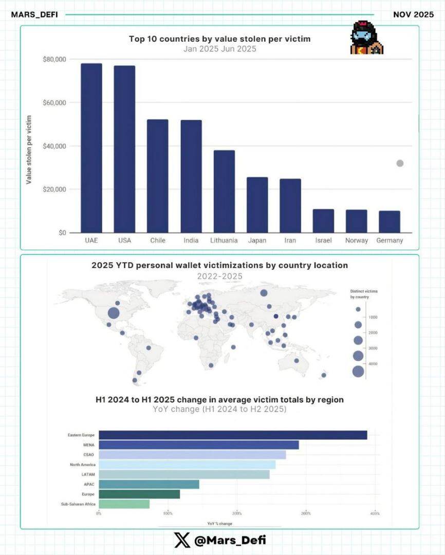 What about Africa? Compared to Europe, the Americas, and Asia, the total number of wallets lost in Africa is far fewer. This is not my subjective judgment, but an objective fact presented by the map.