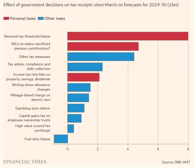 The most eye-catching aspect of the budget is extending the freeze on the personal income tax threshold. This seemingly insignificant technical measure will contribute £12.7 billion to the Treasury in the 2030-31 fiscal year. According to projections by the Office for Budget Responsibility, by the end of the budget cycle, a quarter of British workers will be pushed into the higher 40% tax bracket. This means that even if Labour MPs applaud the increases in landlord tax and dividend tax, it is still the ordinary working class who will truly bear the brunt of the pressure.