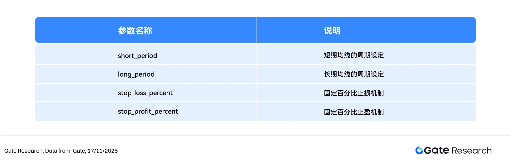 When the program detects a short-term moving average crossing above a long-term moving average, it is considered a trend initiation signal, and the strategy will immediately trigger a buy order. This structure aims to capture the initial strengthening phase of a market trend, identifying the price trend direction through moving average crossovers and combining them with a dynamic stop-loss and take-profit mechanism for risk control. If the short-term moving average subsequently crosses below the long-term moving average, or the price reaches the preset stop-loss or take-profit ratio, the system will automatically execute an exit order to achieve robust profit locking and risk control.
