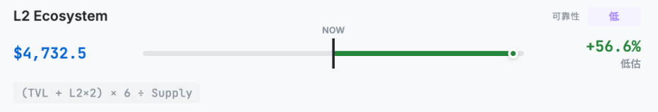 Similar to the first valuation model, this model adds the TVL of all L2 and gives it a 2x weighting because of the L2's consumption of Ethereum. The calculation method is (TVL + L2_TVL×2) × 6 ÷ Supply, which gives a price of 4732.5, representing a 56.6% upside from the current price.