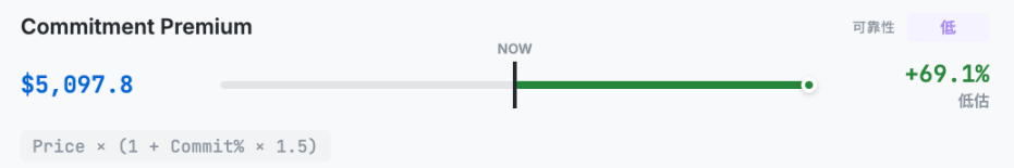 This approach is similar to the second model, except it adds Ethereum locked in DeFi protocols. The multiplier in this model is calculated by dividing the total amount of ETH staked and locked in DeFi protocols by the total ETH supply. This multiplier represents a percentage premium resulting from a "long-term holding belief and lower liquidity supply." Adding this percentage to 1 and multiplying it by the "committed" asset's value premium index of 1.5 relative to liquid assets yields a reasonable ETH price under this model. The formula is: Price × [1 + (Staked + DeFi) ÷ Supply] × Multiplier, resulting in a price of $5097.8, representing a 69.1% upside from the current price.