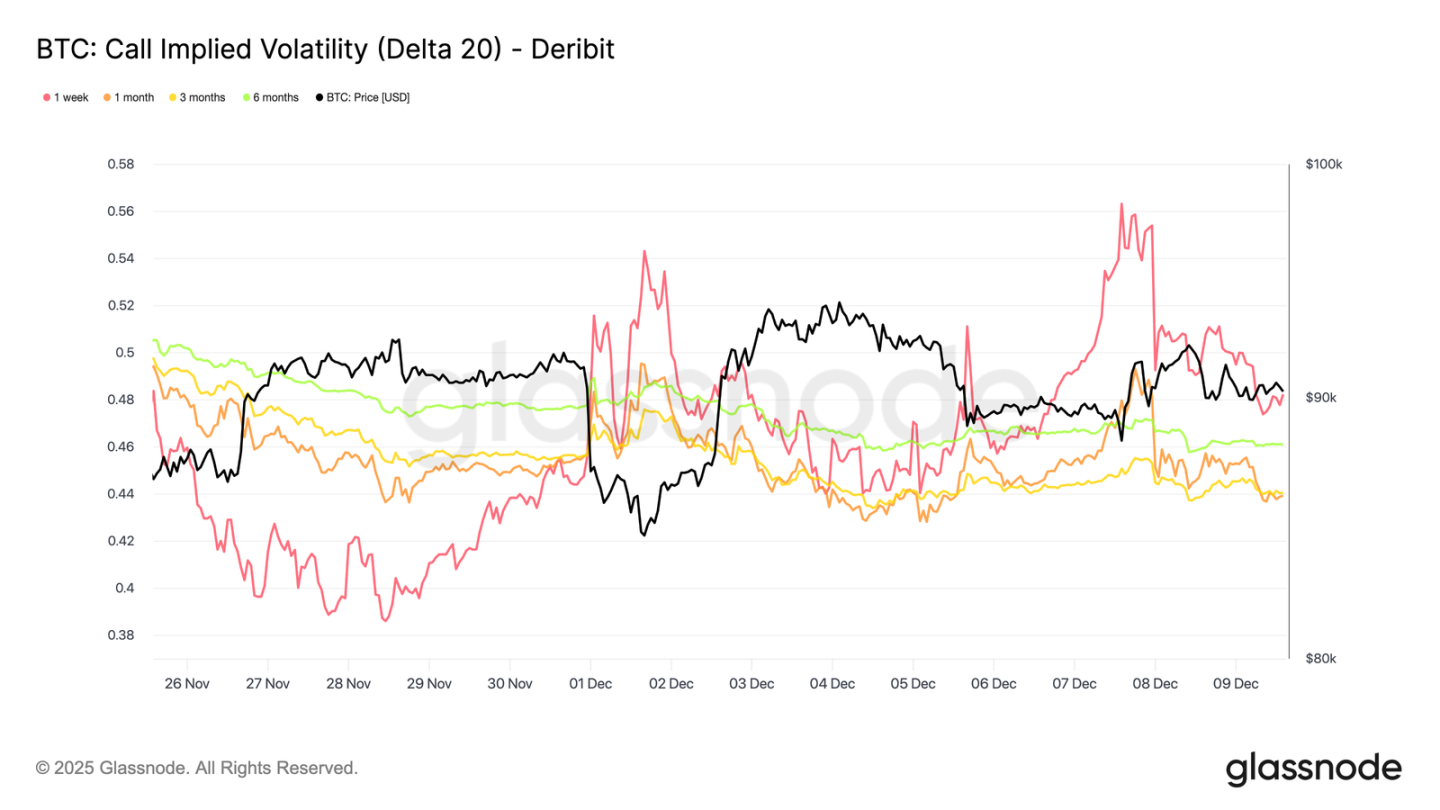 With the FOMC meeting serving as the last major catalyst of the year, implied volatility is expected to gradually diminish in late December. Market direction will depend on whether liquidity improves and whether sellers will back off, or whether the current time-driven bearish pressure will persist.