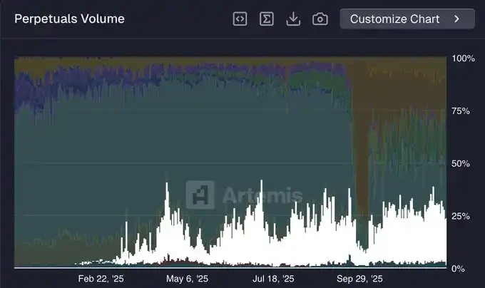 This directly translates into increased market share. Competitors now offer not only the full range of products available on Hyperliquid, but also features that are not yet available on HL (such as Lighter's introduction of a spot market, perpetual stocks, and forex).