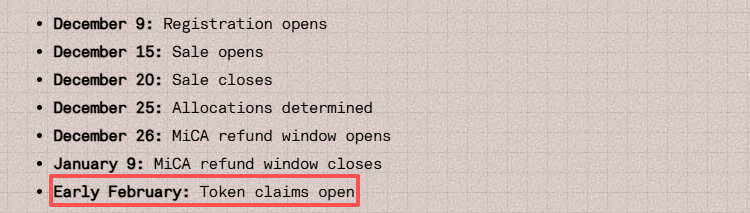 According to official information, tokens from the public sale will be claimable in early February, meaning the TGE is also in early February.
