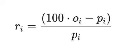 Total Excess Return (ri) is the return relative to cost (before platform fees), where pi is the price in cents, and oi∈{0,1} is the outcome.