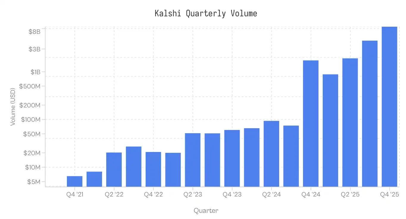 The inflection point coincided with two events: Kalshi's legal victory against the CFTC in October 2024 to list political contracts, and the subsequent 2024 election cycle. Volume surged from $30 million in Q3 2024 to $820 million in Q4. The new liquidity attracted sophisticated market makers, and with them came value extraction from Taker flow.