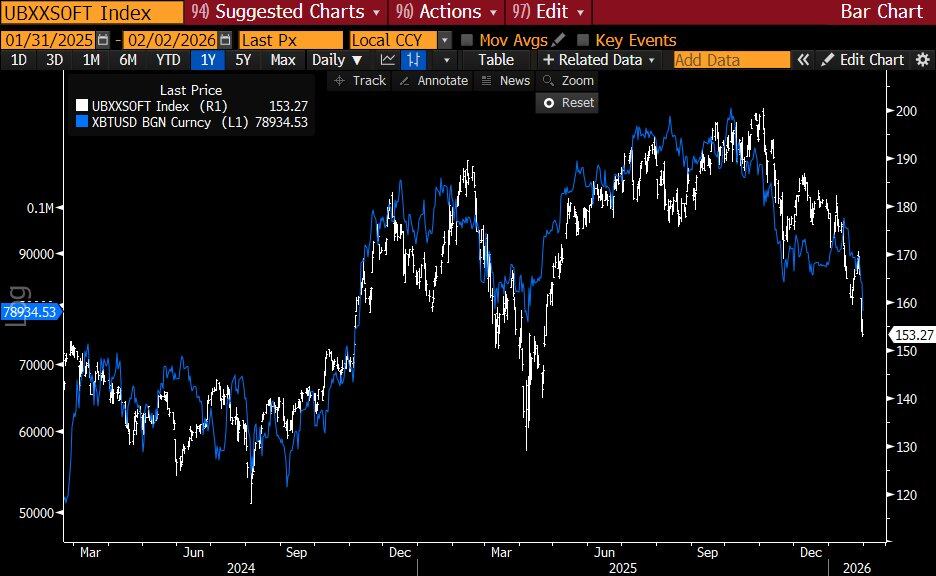The rise in gold has essentially sucked out the marginal liquidity from the system that might have flowed into Bitcoin and the SaaS market. There isn't enough liquidity to support these assets, so high-risk assets are being hit and falling. There's really no way around it.