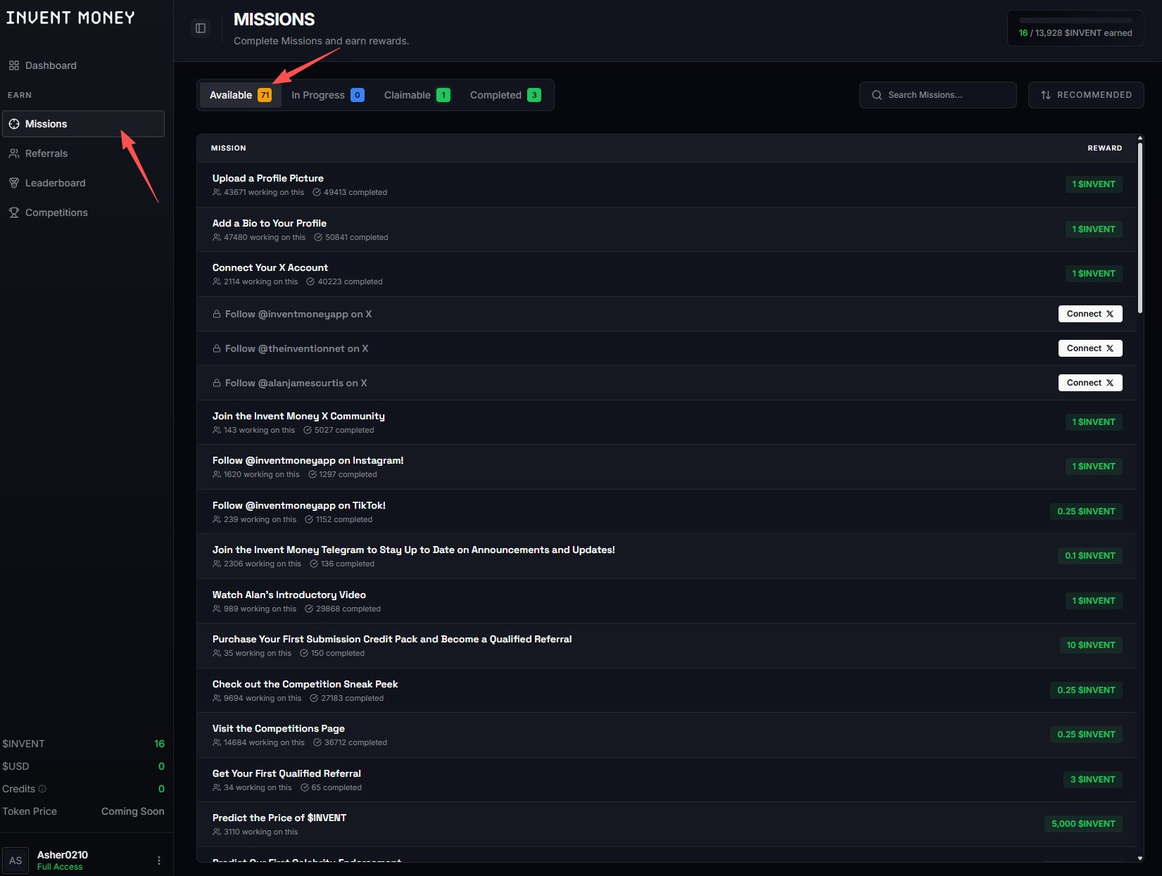 STEP 3. Click "Missions" to complete tasks and earn corresponding token points.