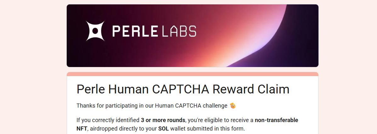STEP 2. In addition to completing all tasks in the "Marketplace", reply with the specified content in the corresponding Perle Labs tweet. Then, go to your personal X platform reply page and verify the answers. You need to answer correctly at least 3 times and upload screenshots (ensure each screenshot clearly shows your X username, reply date, and answer) (Form link: https://docs.google.com/forms/d/e/1FAIpQLSd7m8YgMSf8TxeC7TqJ8SzBIbZosXKWpyEsjbrKTH5pW3UGLQ/viewform?pli=1). The NFT will be airdropped to the Solana network address submitted in the form. The submission window will close on March 8th.