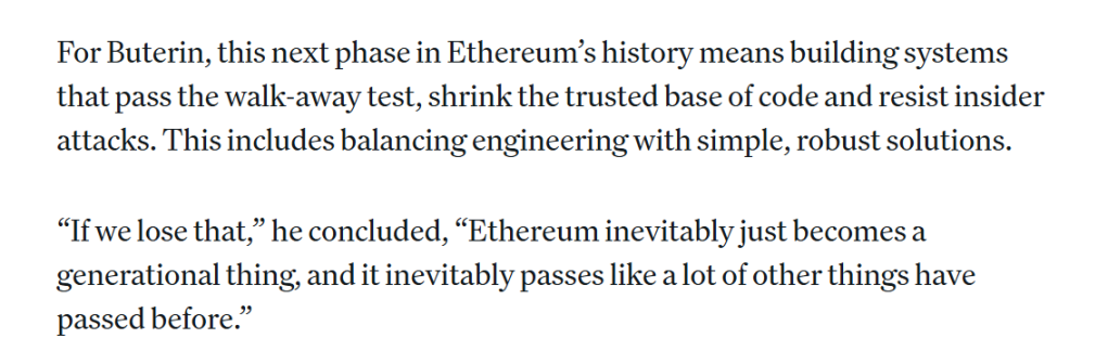 This inevitably brings to mind another standard Vitalik has often mentioned for testing Ethereum's long-term value: the walkaway test. This test asks a very simple question: if all of Ethereum's core developers collectively disappeared tomorrow, could the protocol still function normally?