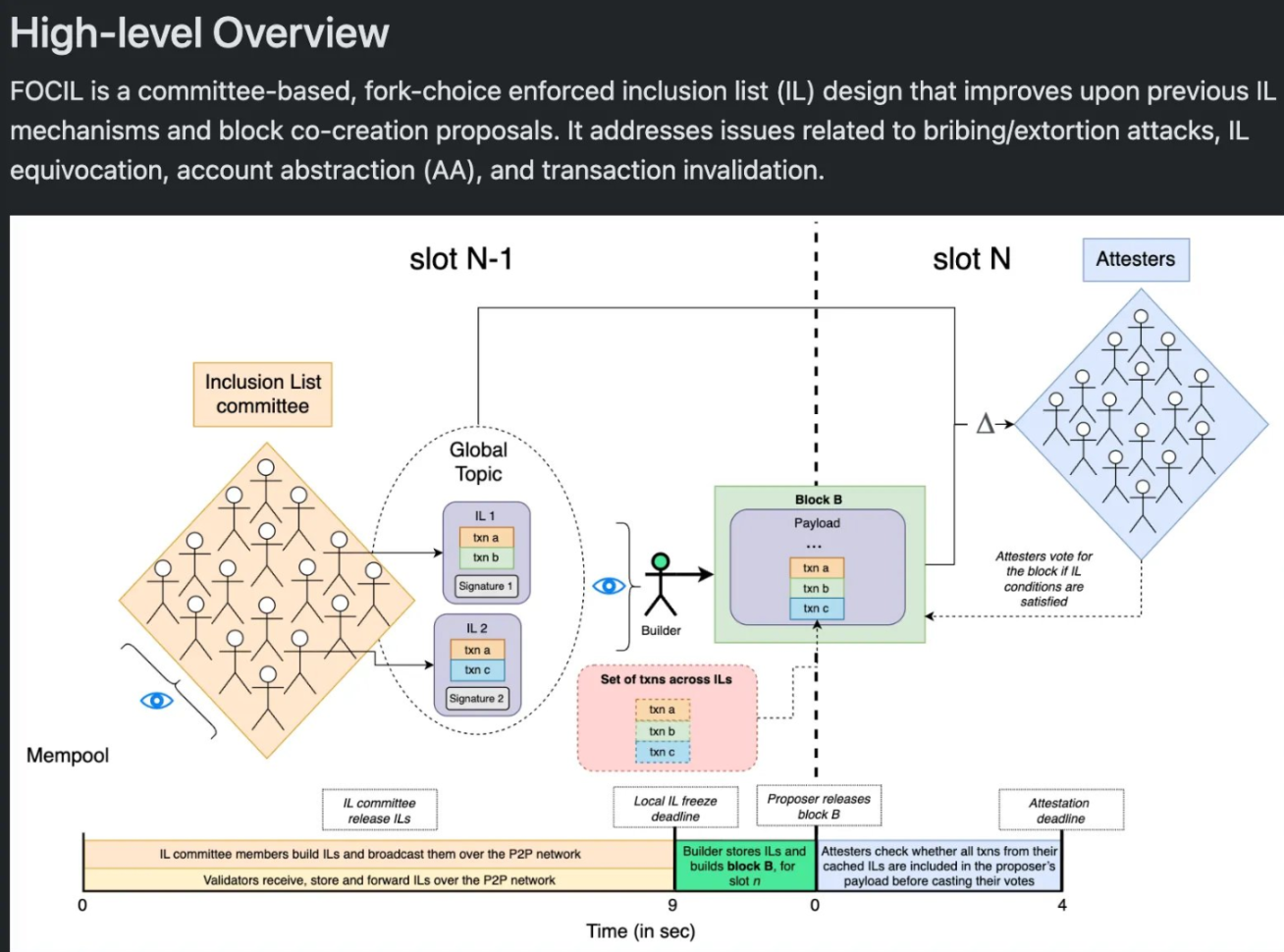 Therefore, FOCIL (Fork-Choice Enforced Inclusion Lists) is the protocol layer's direct response to the censorship problem. Its core idea is not complicated: by introducing an Inclusion List mechanism, whether a transaction can be included in a block in a timely manner no longer depends entirely on the unilateral will of the proposer or builder.