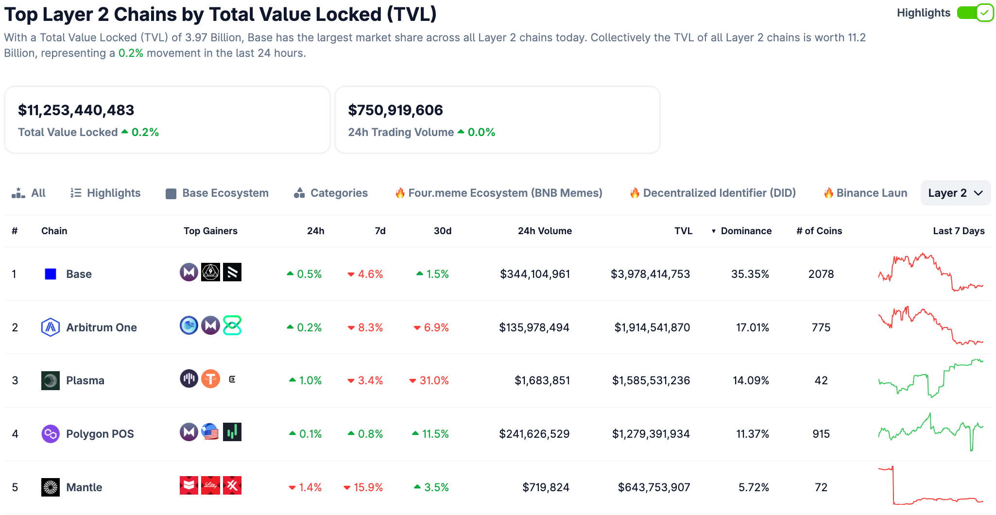 This week, Base and Arbitrum have market shares of 35.35% and 17.01%, respectively, ranking first and second.