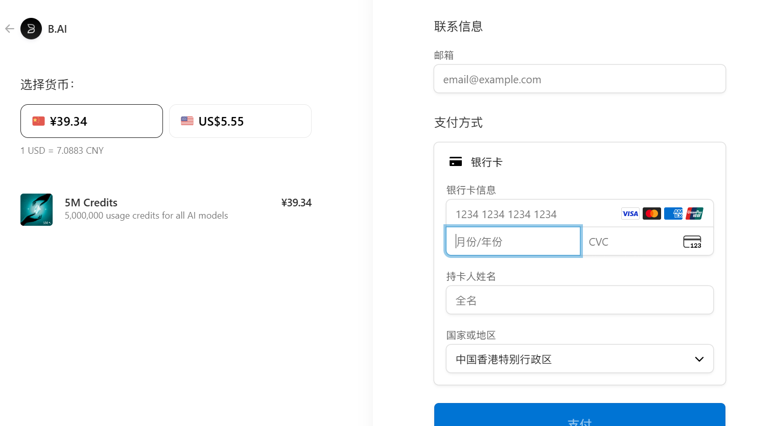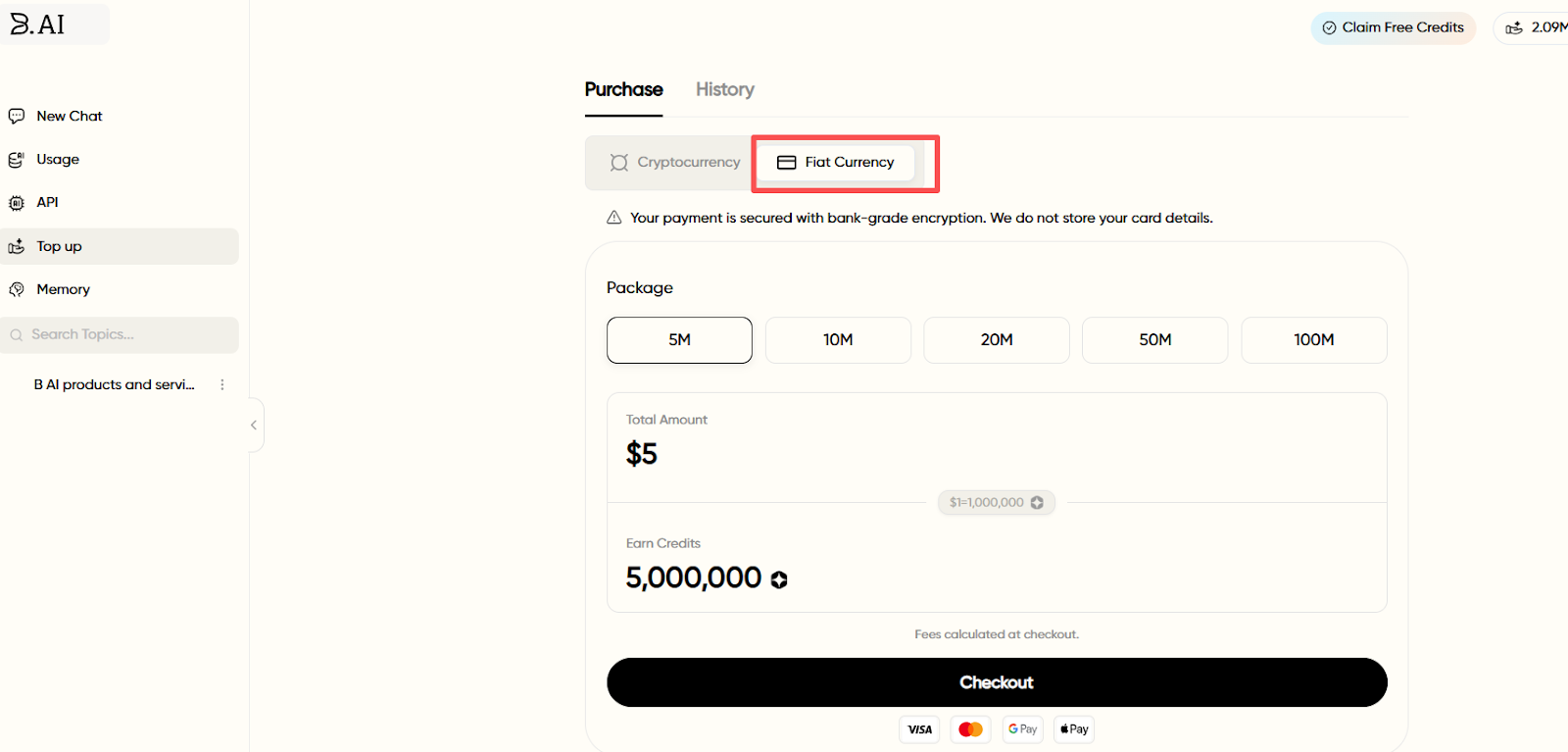 2. Fiat Currency Top-Up: B.AI LLM Service has integrated Stripe payments, supporting payment methods like Visa and UnionPay. In the future, more third-party payment options like Google Pay will be gradually introduced to provide a more flexible and convenient payment experience.
