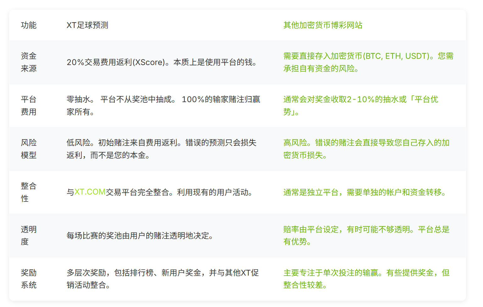 他にも暗号通貨ベースの賭けプラットフォームは存在しますが、XT.COM の暗号通貨サッカー賭けモデルにはいくつかの明確な利点があります。