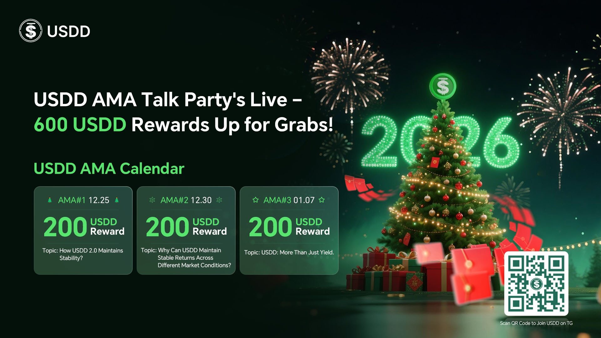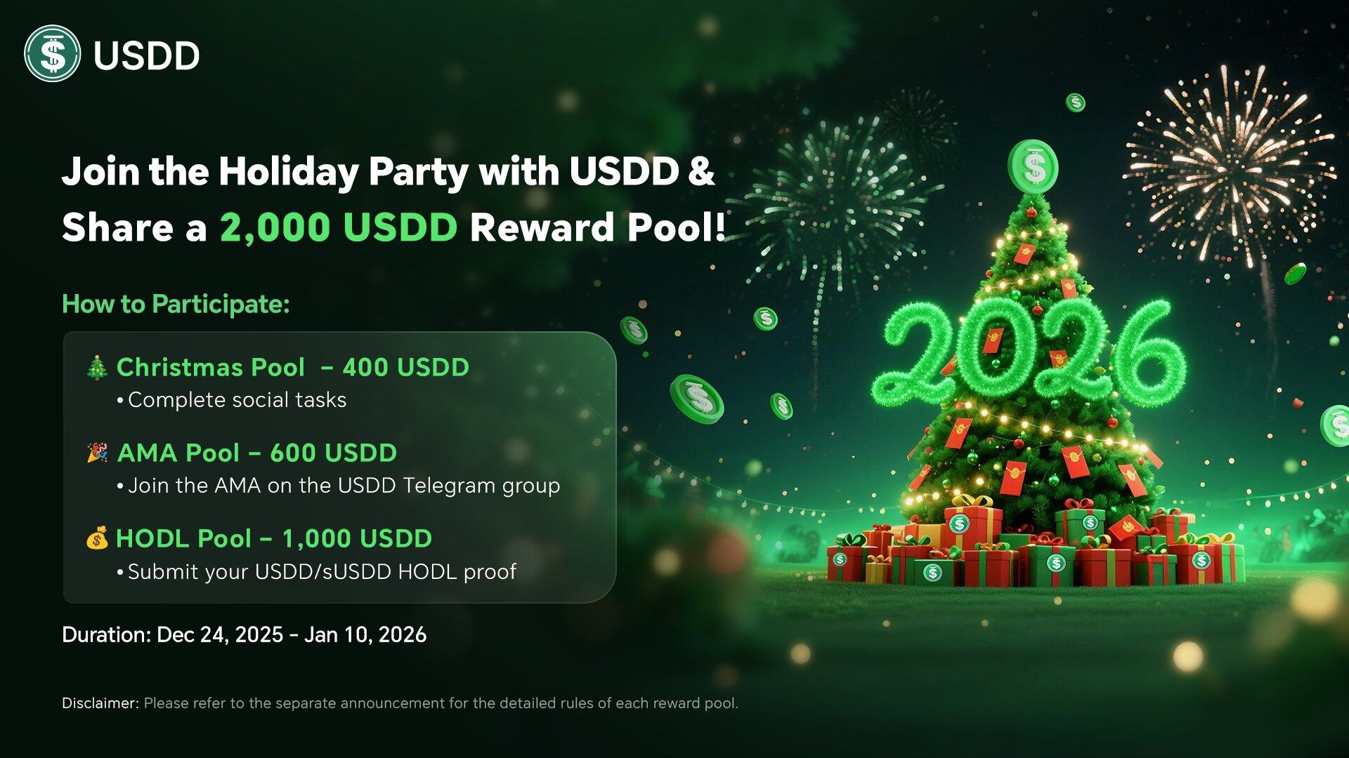 このホリデーシーズン中、USDD は 3 つのコミュニティ イベントを通じて 2,000 USDD をプレゼントします 🎄