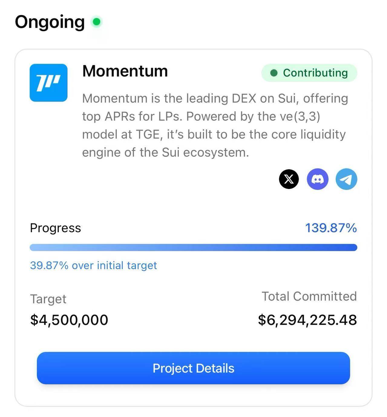 Momentum MMT コミュニティ IPO の申し込みが始まってから 1 時間も経たないうちに、割り当て額は 600 万ドルを超えました。