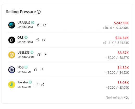 Odaily Planet Dailyによると、オンチェーンモニタリングプラットフォームであるStalkchainは、Xプラットフォームにおいて、あるウォレットが268万7000ドル相当のURANUSを1分あたり約860ドルの価格で静かに売却していると報告しました。これは時価総額の約1.08%に相当します。このような継続的な売り圧力は、流動性が不足している場合、トークンの価格動向を急速に変化させる可能性があります。