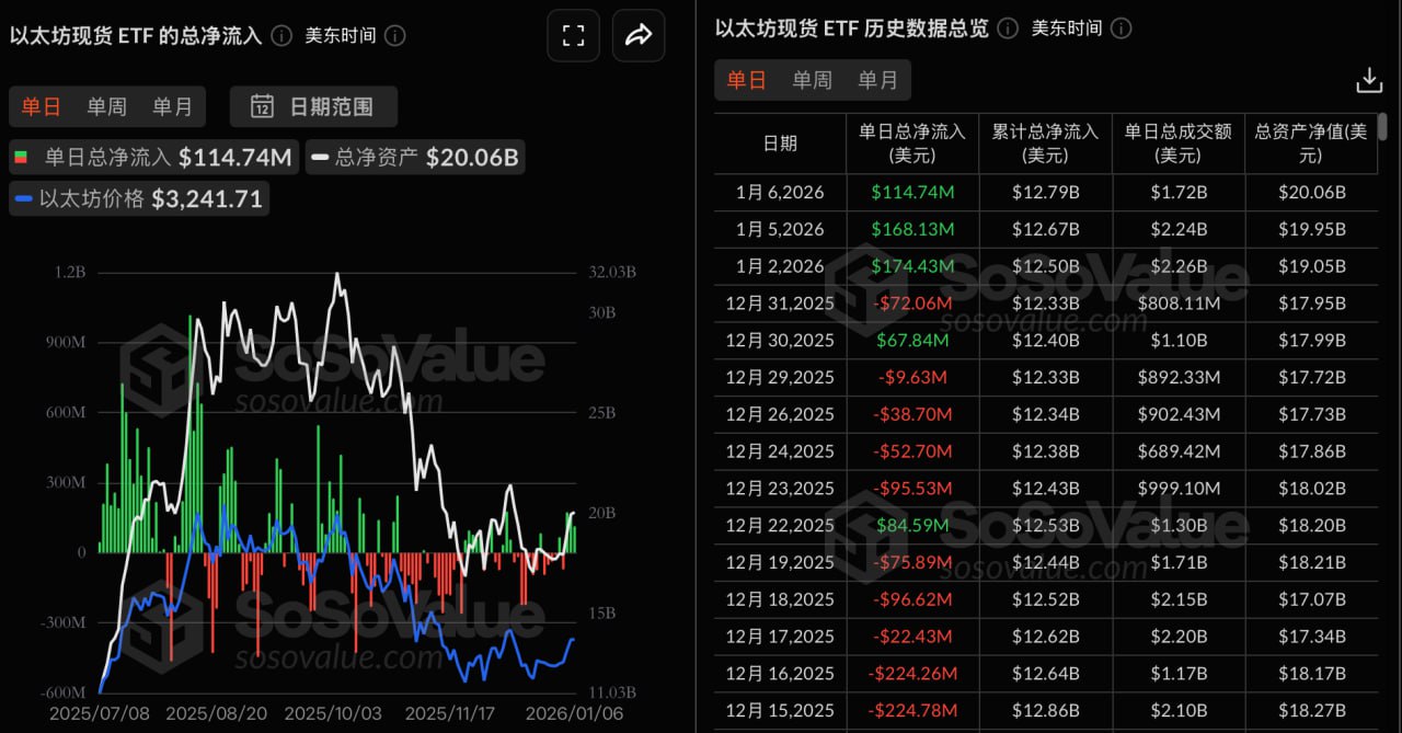 Odailyの報道によると、SoSoValueのデータによれば、昨日(米国東部時間1月6日)イーサリアム現物ETFの総純流入額は1億1500万ドルでした。