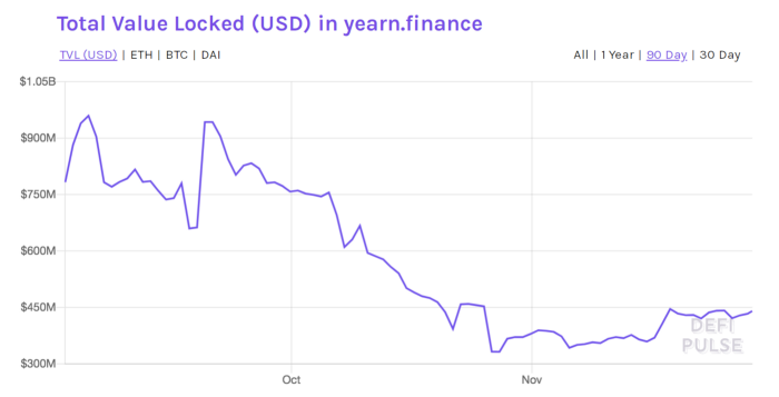 クリプトバレーライブ (ID:cryptovalley) 、著者:ルー・カーナー、翻訳:オリビア、許可を得てOdailyによって複製されました。 "9月20日に「イヤーンはDeFiの未来、DeFiは金融の未来」という記事を公開しました。本文にはこう書いてありました。"人生はとても速く進むので、時々立ち止まって見つめないと見逃してしまうかもしれません。 —フェリス・ビューラー 開発速度が DeFi のレベルに達する業界は世界でも見たことがありません。 DeFi のイノベーションが最速で発展できる理由は、DeFi が構成可能であるためです。つまり、レゴのように他の人のイノベーションを取り入れ、他のコードと組み合わせることで、まったく新しいものを手に入れることができます。 製品版でテストしています Yearn の創設者である Andre Cronje 氏。 私が 3 年以上年中無休で暗号通貨に取り組んできた中で、 Yearn は私が見た中で最も興味深く拡張的なプロジェクトです。 Yearn を初めて使用する場合は、この記事から始めるのが良いでしょう。これは Yearn について詳しく説明する第 2 部です。 後半では、その投稿から 70 日間の変化について説明します。この 70 日間、イヤーンは猛烈なスピードで革新、教育、実行を続けました。過去 70 日間の Yearn のハイライトをいくつか紹介します。 1. 総ロックアップ量が 53% 減少 総ロックアップ量は市場で最も懸念される指標であるため、イヤーンの総ロックアップ量の50%減少は懸念される。ただし、ロックされたポジションの総数が減少した理由は理解できます。イヤーンが構築している DeFi エコシステムの範囲と規模は増加する一方だからです。 9月29日のエミネンス襲撃など、下落の理由は数多くある。 Yearn の創設者 Andre Cronje が主導するプロジェクトとして、Eminence および他の複数の DeFi プロジェクトの利用はすべての DeFi に影響を与えますが、Yarn への影響はさらに大きくなります。 もう一つの要因はイーサリアム 2.0 の立ち上げであり、立ち上げの一環として 850,000 ETH 以上のステークが吸収されました。これらのETHは、イヤーンや他のDeFiプロジェクトを含むどこかから来ており、これらのプロジェクトにロックされているETHの量は、過去2週間で200万減少しました。 2. 価格は依然として高値で不安定であり、今日の価格は 25,000 ドルを超え、11 月 5 日の安値の 3 倍以上です"Keeper"Yearn が何であるか、ましてやそれがどのように発展するかについては、世界中でほとんど誰も知りません。したがって、世界がイヤーンの価格設定を知らないのも不思議ではありません。 3. Cronje は、プロジェクトが適切に維持されることを保証する調整ネットワークである Keep3r Network を発表します 現在、すべての DeFi プロジェクトは人材の発掘(または ) プロトコルのさまざまなパラメーターを維持します (Oracle で update() を呼び出してその基礎となる値を更新したり、戦略で Harvest() を呼び出して資金を引き出すなど)。 Cronje は 10 月 22 日、keep3r が承認された Keeper にアクセスするための単一ソースをプロジェクトに提供すると発表しました。 Keep3r は独立したプロジェクトで、 Yearn とは直接関係ありませんが、 Yearn と DeFi エコシステム全体に貢献します。 保税された各 Keeper は、契約の実行を開始する前に Keep3r によってレビューおよび承認されます。"Keeper に特定のアクションの実行を要求するプロジェクトは、契約を Keep3r ネットワークに送信するだけで済み、承認された Keeper が契約を実行できます。キーパーは、ETH やプロジェクト トークンを通じて直接、または流動性を通じて間接的に報酬を受け取ることができます。" Keep3r ネットワークでは、以前は不可能だった一連の DApp を作成することもできます。実際にトランザクションを送信したりガスを消費したりせずにETHやその他の送金を可能にするスマートコントラクトであるMetaWalletを含む、3つの新しいDAppsがKeep3rネットワークの一部として開始されます。 4. Yearn が Pickle との提携を発表 マージ 11 月 24 日、Cronje は次のように発表しました。「Pickle と Yearn の開発チームは、2 つのプロジェクトが共生的に連携できる構造を考案しました。」"つい数日前、Pickle が攻撃され、Jar (別名金庫) から Dai の 2,000 万ドルが盗まれました。" この合併により、Pickle はセキュリティの専門知識を含む Yearn のエコシステムに加わり、一方、Pickle は開発者の才能と総株式を (財務省の合併により) 貢献します。 DeFiの最初の救済では、新しいトークンCORNICHONがピクル攻撃の被害者に比例して配布されます。 Pickle と Yearn は別のブランドのままになります。 5. YearnがCreamとの提携を発表 マージ 11 月 26 日、Cronje は、収量農業の活用を可能にするプロトコルである Cream v2 の開発チームとの合併を発表しました。 相乗効果には、プロトコル間の準備サービスの促進が含まれ、Aave や Compound などのプロトコルが追加の資本に効率的にアクセスできるようになります。 Cream は、分散型融資、AMM、ステーブルコ