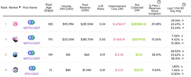 大手DEXとして、Uniswapは流動性マイニング報酬をキャンセルしましたが、手数料だけを稼ぐことで依然として利益を上げています。 APY Vision は、過去 30 日間の平均手数料が 53% であることを示しています。ただし、これはすべての AMM が同じであるという意味ではありません。実際、Uniswapでさえ、2020年11月に流動性マイニング報酬を一時停止した後、短期的には多くの流動性を失いました。昨年8月にsushiswapによって完了した吸血鬼の攻撃は言うまでもありません。スシスワップの場合、取引量が少ないため、手数料からの 30 日間の平均収入はわずか約 15% です。