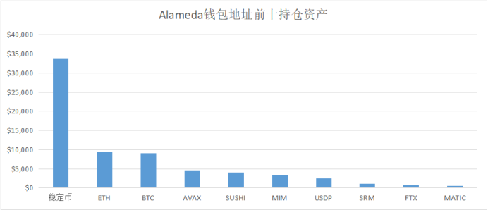 ナンセンがマークした2つのウォレットアドレスによると、アラメダ・リサーチの総資産は約7億ドル。このうち安定通貨資産は3億3,000万米ドルで、BTCとETHの合計価値は1億8,000万米ドルです。
