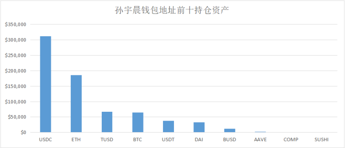 Sun Yuchen の純資産は 48 億米ドルにも上ります。総資産は70億ドルを超え、Compound and Liquidityからの融資は30億ドルとなっている。保有上位 10 件から、ジャスティン・サンは市場の見通しについて楽観的ではないようであることがわかります。USDC、TUSD、USDT、DAI、BUSD およびその他の安定通貨資産で 45 億米ドル以上を保有していますが、合計では 45 億米ドル以上を保有しています。 BTCとETHの資産はわずか25億米ドルです。