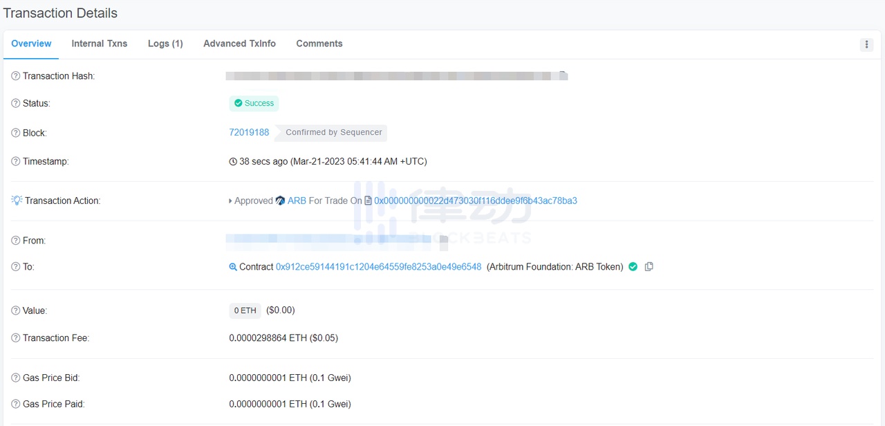 1. Arbiscan ブロックチェーン ブラウザーを通じて ARB トークン コントラクトを検索します。