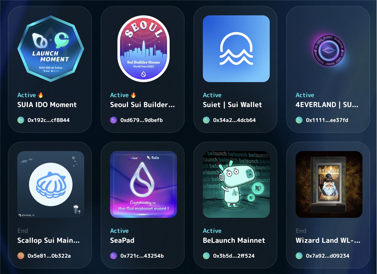Suia は、Sui Network 上に展開される新しいソーシャル アプリケーションであり、製品を通じてオープンで強力なユーザー主導の新しいコミュニティを作成するというアイデアを持っています。この目標を達成するために、Suia の製品デザインでは、次のような多くの NFT アクティビティ メダルをデザインしていることがわかります。