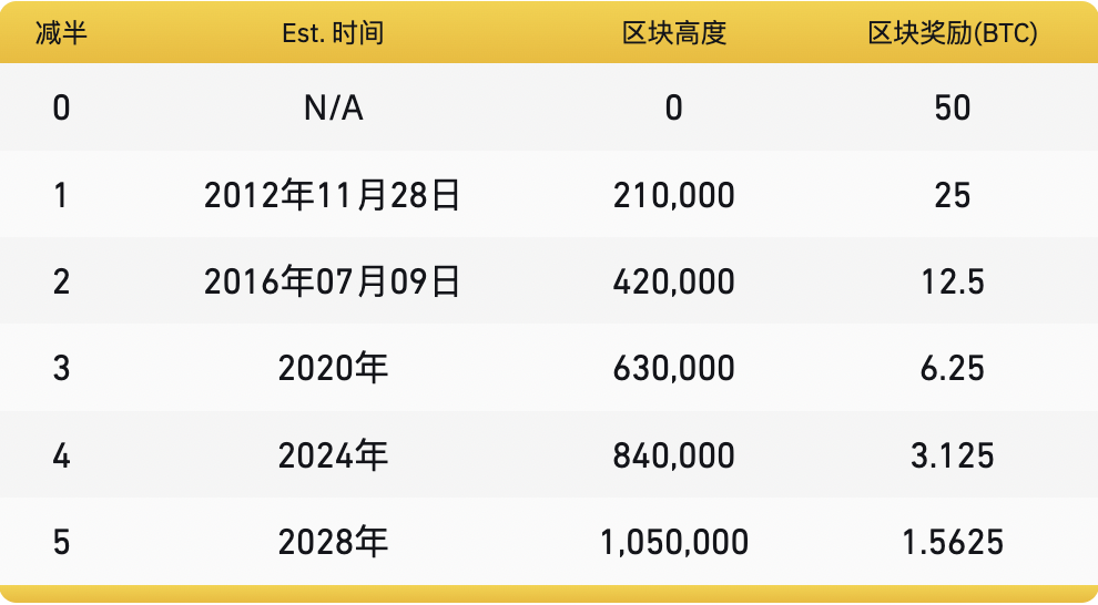 ビットコインの設計によれば、マイナーがブロックの解決に成功するたびに、一定量の新しいビットコインが報酬として与えられます。ただし、ビットコインの供給を制御するため、ビットコインプロトコルではビットコインのブロック報酬を約4年ごとに半減することが定められており、半減によりブロック報酬は3.125BTCに減少します。