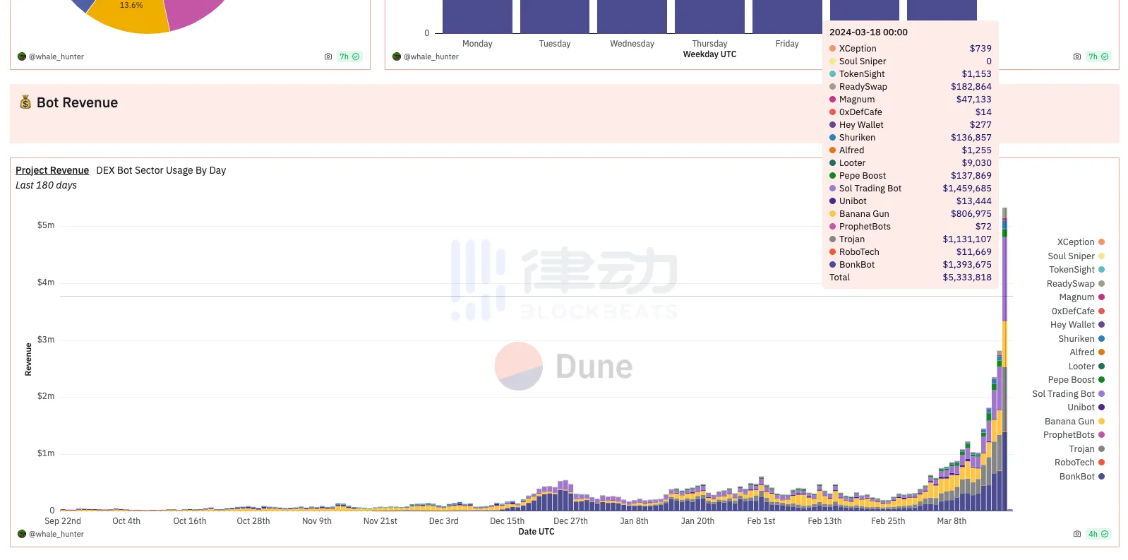 売買を通じて利益を得るが、より大きなリスクを負う必要があるトレーダーと比較して、「金鉱山の周囲の水を販売する」ボットは、はるかに小さなリスクとリターンの比率を得ることができます。統計によると、昨日、さまざまなBOTの総収入は533万米ドルを超えました。
