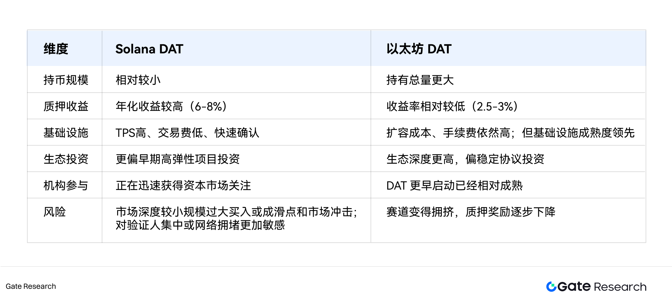 中長期的には、Solana DATは急速な成長を続け、DATモデルの中で最も急成長し、最もダイナミックなセクターの一つになる可能性があります。しかし、絶対的な規模と制度的成熟度という点では、依然としてイーサリアムが優位に立っています。イーサリアムDATの影響力は、量、資産規模、DeFiエコシステムやオンチェーン活動への頻繁な参加という点で、比較的成熟しています。Solanaのメインネットの安定性、インフラのセキュリティ、規制の明確さといった重要な要素が改善し続ければ、Solana DATは将来イーサリアムと並ぶ大きなトレンドとなり、特に高速性と低ガス消費を求めるDAT企業に支持される可能性があります。