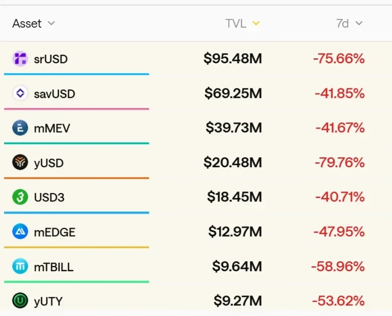 パニックは急速に広がりました。調査会社Stablewatchによると、翌週、配当支払いステーブルコインから10億ドル以上が流出しました。これは、中規模都市の商業銀行の預金が7日間ですべて取り壊されたのと同等の規模です。