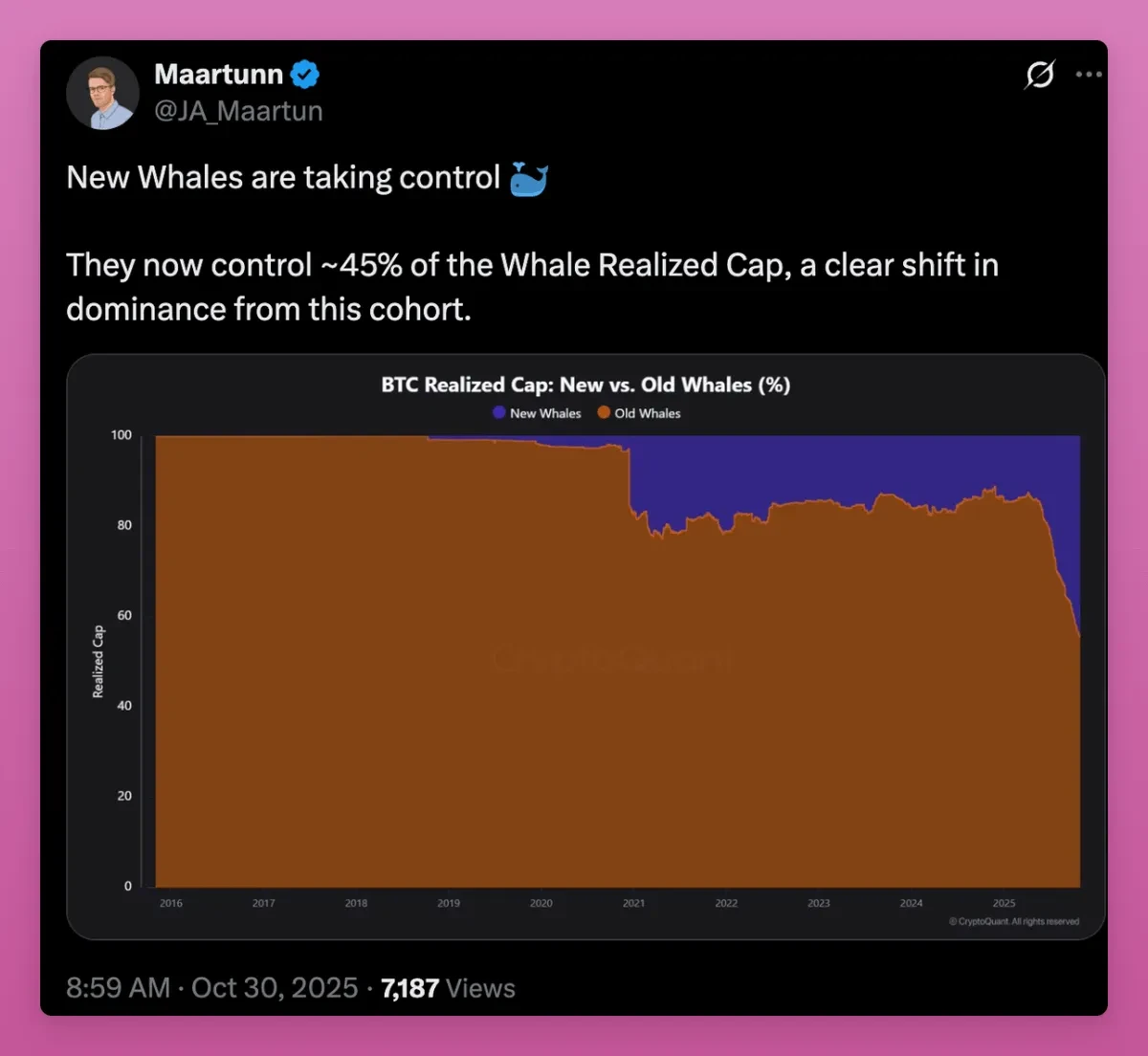 Odaily Note:イグナス氏は、BTC ETFの成立、機関投資家の採用加速、Genuine Actの成立、そしてClairty Actの成立が迫っているにもかかわらず、規制強化や大規模なハッキング、そしてファンダメンタルズ崩壊といった現象が見られず、BTCは依然として停滞し、流動性に乏しいと指摘しています。初期のBTC投資家は現在、売却ではなく、体系的に現金化を進めており、新規投資家は安値で買い増ししようとしています。