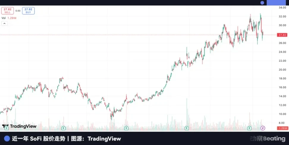 ニュースが発表された日、SoFiの株価は過去最高値に急騰し、時価総額は389億ドルとなり、年初来で116%の増加となった。