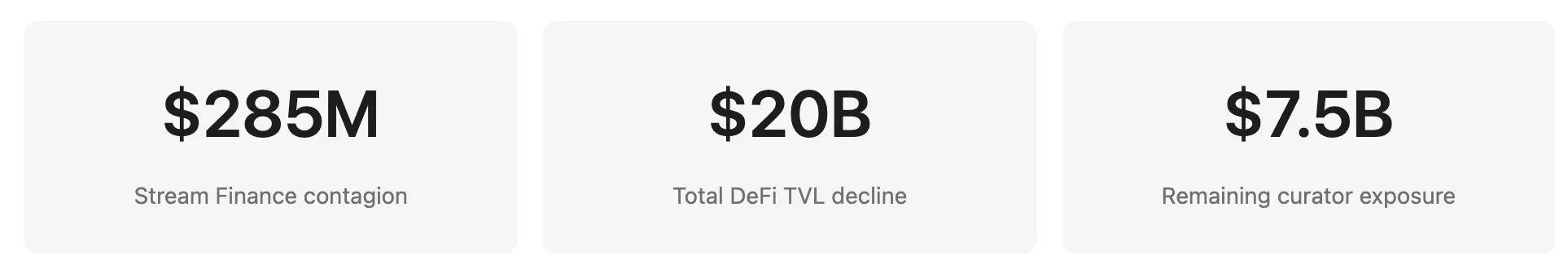 Stream Financeの破綻において私が観察したのは、従来の意味でのスマートコントラクトの脆弱性を巧妙に悪用した攻撃でも、オラクル操作攻撃でもありませんでした。むしろ懸念すべきは、「分散化」という名の下に隠された、基盤となる金融システムの深刻な透明性の欠如でした。外部のファンドマネージャーが実質的に効果的な監視なしに9,300万ドルの損失を出し、28億5,000万ドルのプロトコル間連鎖リスクを引き起こしたとき、そして「ステーブルコイン」エコシステム全体が、基盤となる資産へのペッグを維持しながらも、1週間でTVLが40%から50%も急落したとき、私たちはDeFiの現状に関する根本的な事実を認めなければなりません。それは、業界が過去の教訓から何も学んでいないということです。