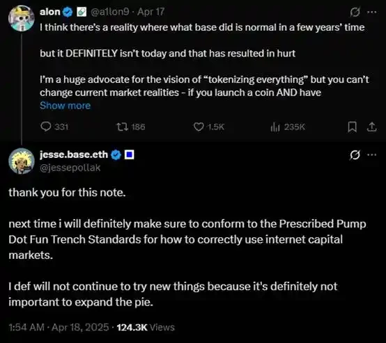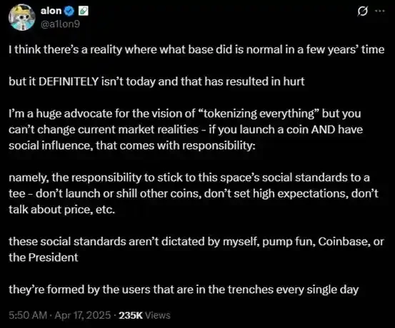 特筆すべき興味深い逸話として、pump.funの創設者であるアロン氏が、あらゆるものをトークン化するという考えは市場、特に影響力のある人々にとって有害であると主張したことがあります。彼は、トークンを発行することは、それに応じた責任を負うことを意味すると主張しました。これはブロックチェーンにおける暗黙のルールです。